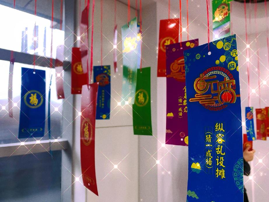 活動(dòng)現(xiàn)場(chǎng)一個(gè)個(gè)交錯(cuò)點(diǎn)綴的燈謎