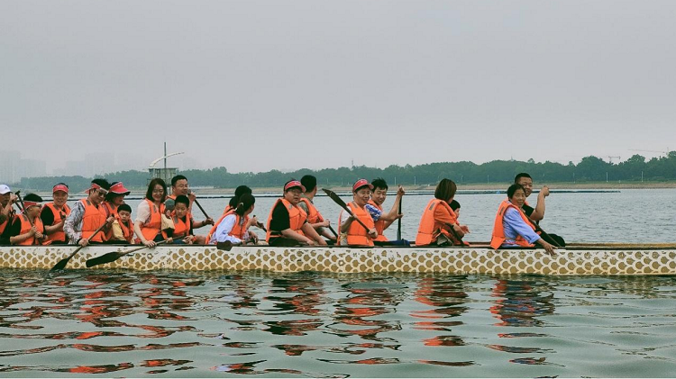 享受龍舟競技,感受集體的力量。大家身穿救生衣,手持船槳,奮勇爭先,奮力向前,誰也不甘愿落后,熱情滿滿,你追我趕。