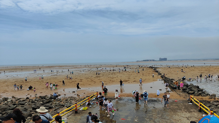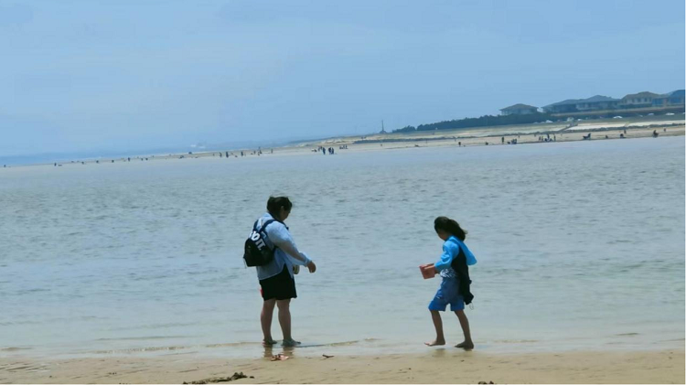 之后大家乘車去往多島海趕海園,享受海邊人民趕海的樂趣,提著小桶拿著耙子找尋螃蟹、貝殼和海星,接受大海的饋贈(zèng)。陽光正好,海風(fēng)拂面,逃離壓力和焦慮,享受海邊的美麗風(fēng)景。