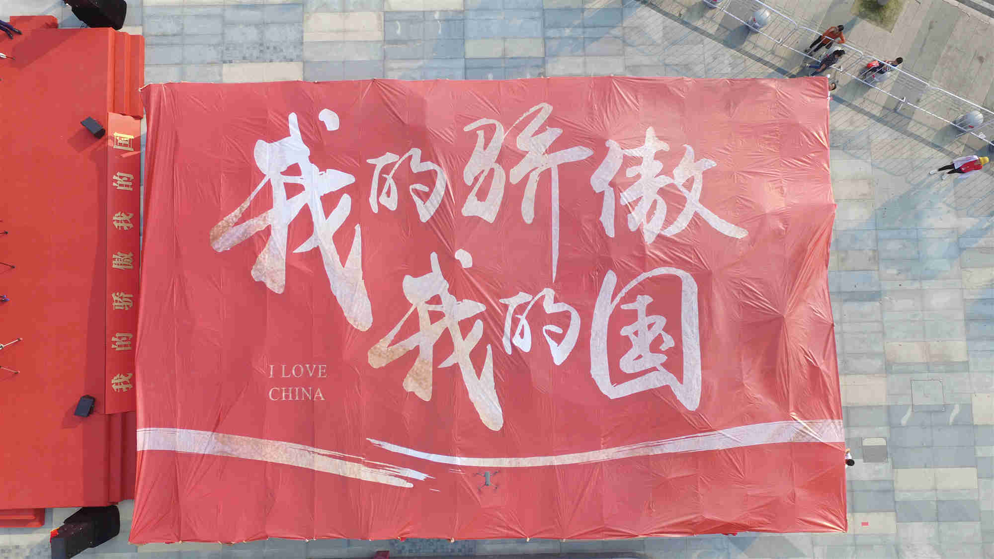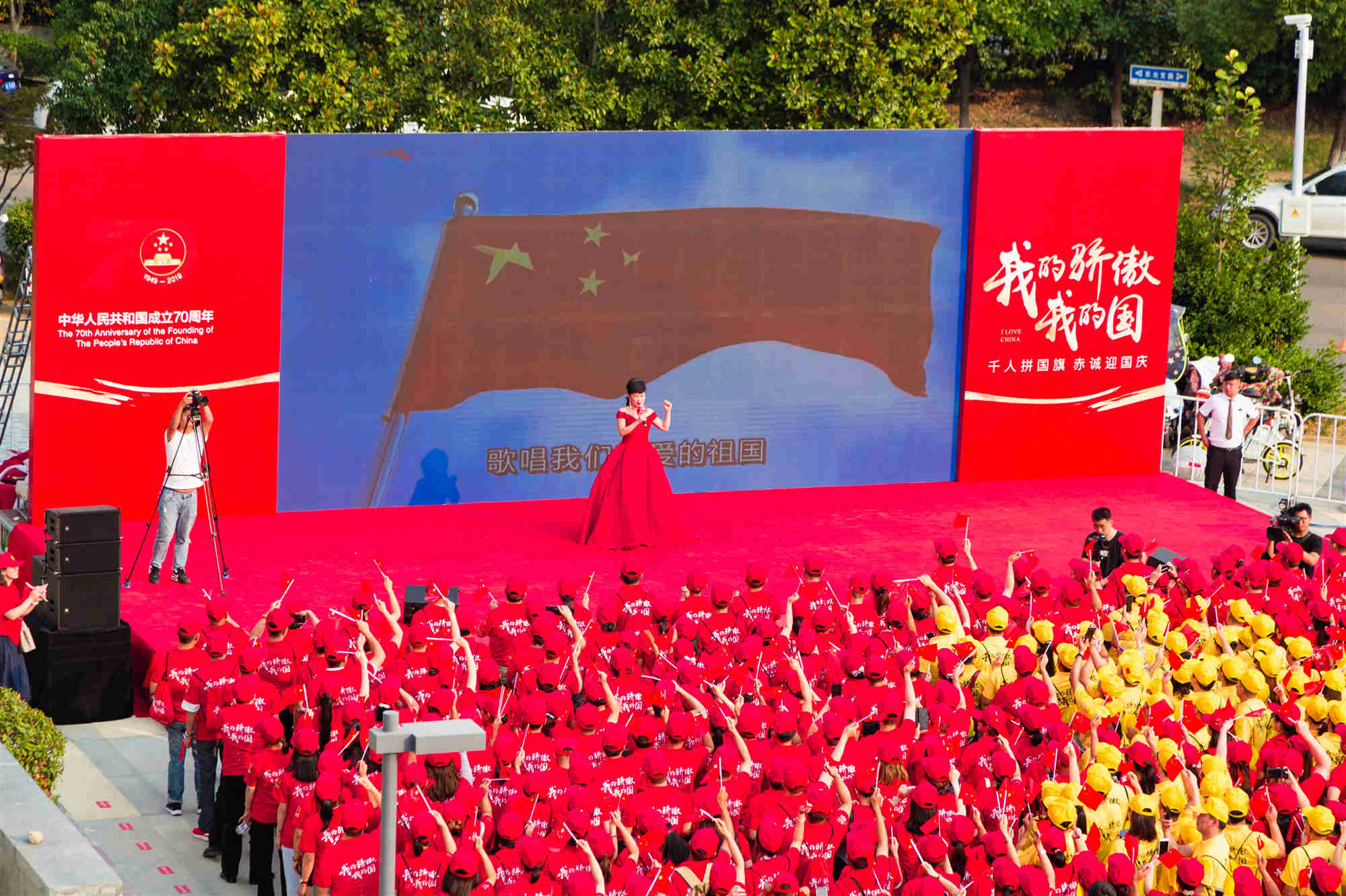 伴隨著國旗拼接完成,一面巨型旗幟覆蓋在國旗上,“我的驕傲,我的國”七個大字呈現(xiàn)在人們視野中。所有參與者肅穆而立,飽含熱情,讓人熱淚盈眶。