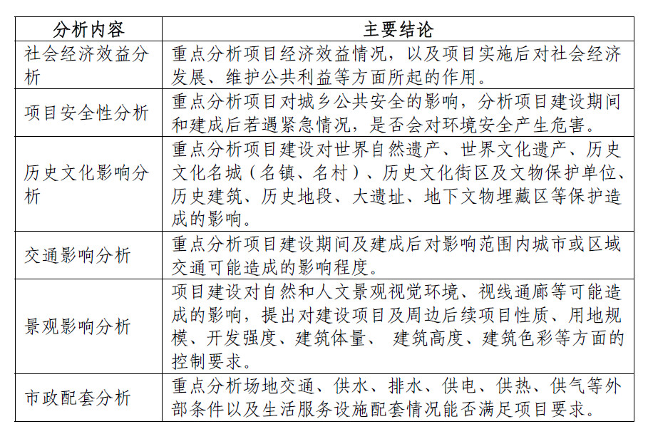 主要包括項目名稱、項目類型、建設(shè)性質(zhì)、用地性質(zhì)、用地規(guī)模、供地政策、建設(shè)范圍、建設(shè)規(guī)模、投資規(guī)模、服務(wù)對象和范圍、技術(shù)工藝、耗能情況、建設(shè)周期與時序安排等。