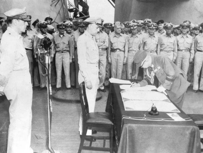 1945年9月2日上午9時(東京時間),參加對日作戰(zhàn)的同盟國代表接受日本投降簽字儀式,在停泊于日本東京灣的美軍軍艦“密蘇里”號上舉行。中、美、英、蘇等9國代表相繼簽字,接受日本投降。至此,中國人民抗日戰(zhàn)爭勝利結(jié)束,世界反法西斯戰(zhàn)爭也落下帷幕。