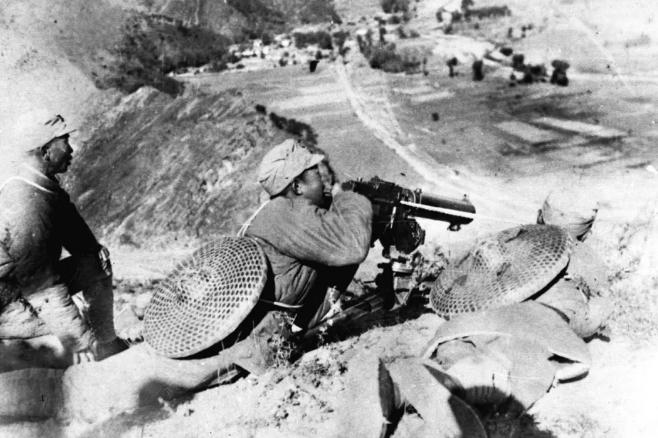 ▲1937年,八路軍115師戰(zhàn)士在平型關(guān)公路兩側(cè)伏擊日軍。新華社發(fā)