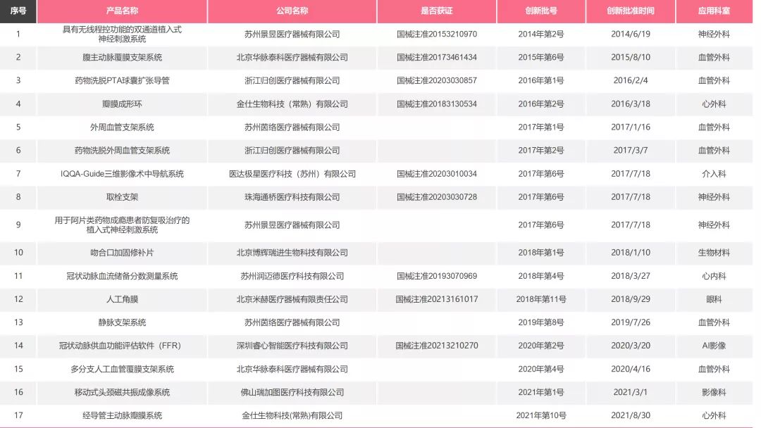 截至2022年2月7日,行業(yè)已有372個(gè)醫(yī)療器械產(chǎn)品獲得創(chuàng)新批件,其中145個(gè)創(chuàng)新產(chǎn)品獲得注冊證(見附件)。作為創(chuàng)新醫(yī)療器械和高端醫(yī)療器械優(yōu)質(zhì)服務(wù)商,奧泰康參與的項(xiàng)目已有17項(xiàng)獲得創(chuàng)新批件,其中9項(xiàng)產(chǎn)品獲得注冊證。