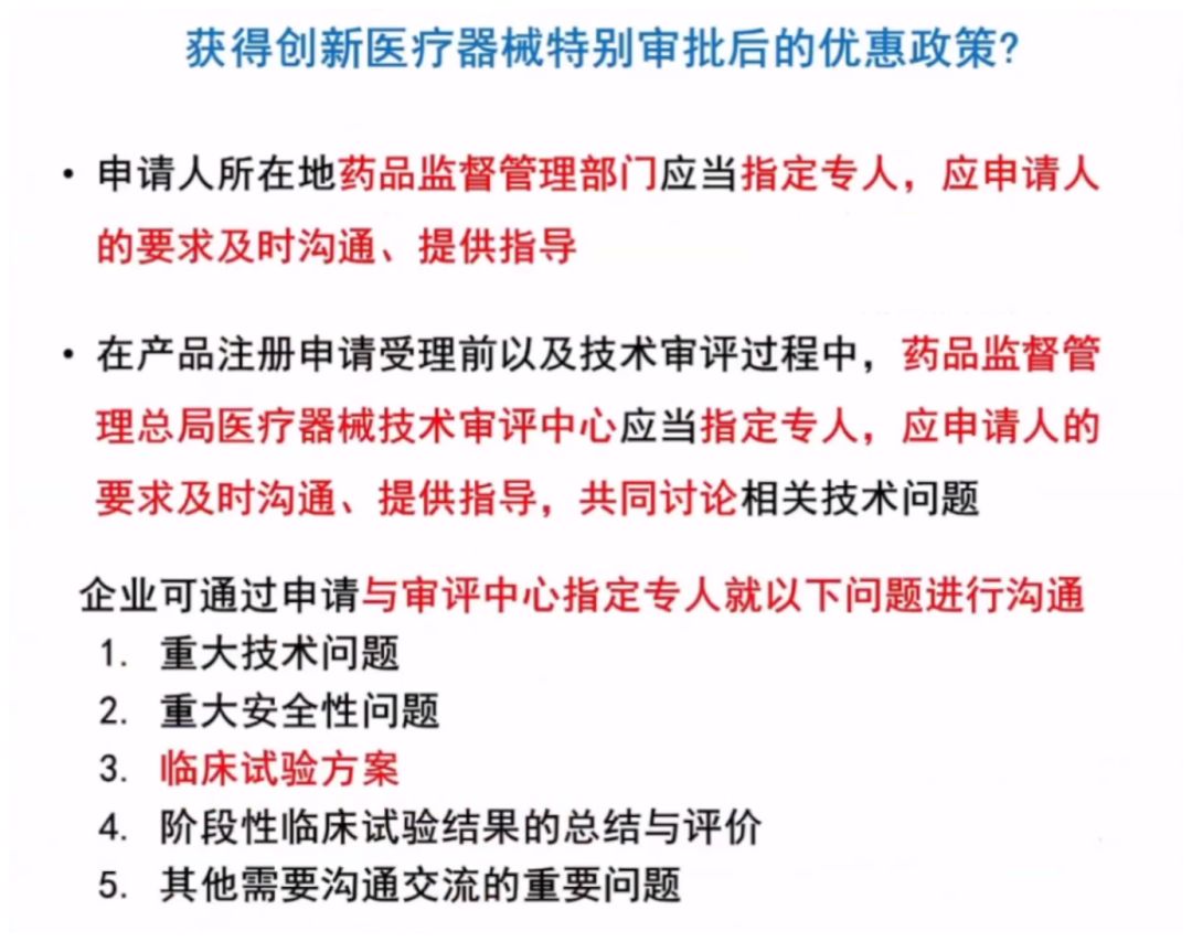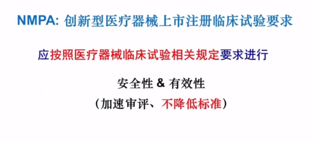 李衛(wèi)教授講到,雖然是創(chuàng)新醫(yī)療器械,國家藥監(jiān)局規(guī)定也要按照醫(yī)療器械臨床試驗(yàn)相關(guān)規(guī)定的要求去執(zhí)行,評(píng)價(jià)產(chǎn)品的安全性和有效性,創(chuàng)新政策的推出是為了加速審評(píng)過程,但不會(huì)降低審批標(biāo)準(zhǔn)。