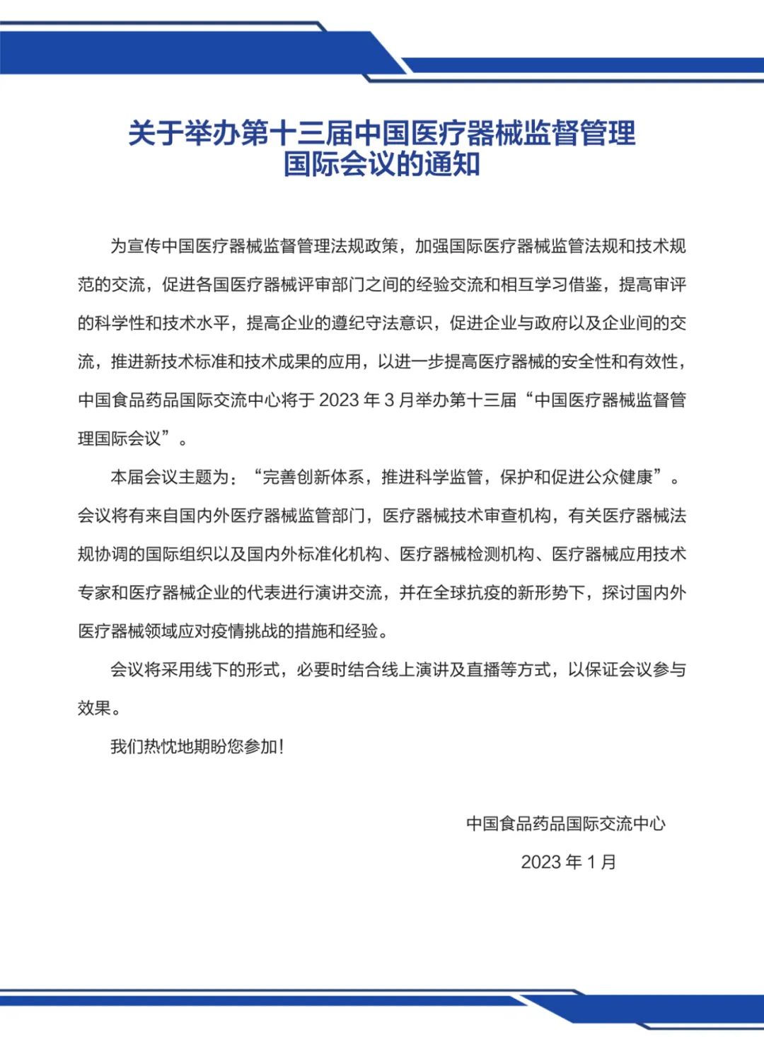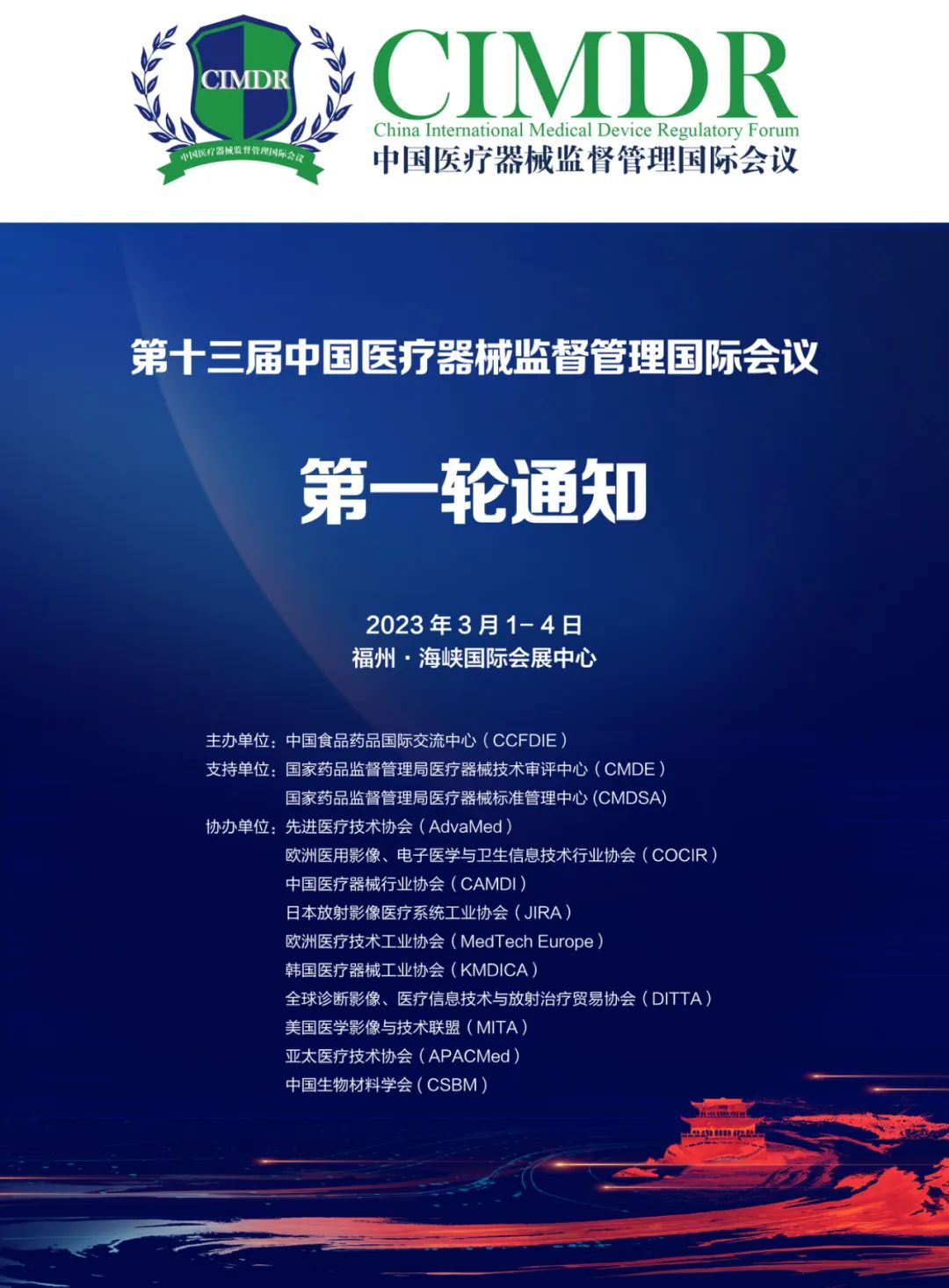 2023年3月1日-4日,第十三屆中國醫(yī)療器械監(jiān)督管理國際會議(CIMDR)將于福建省福州市海峽國際會展中心隆重舉行,奧泰康作為參展商和演講嘉賓參加會議,誠摯邀請各位醫(yī)療同仁蒞臨展位。