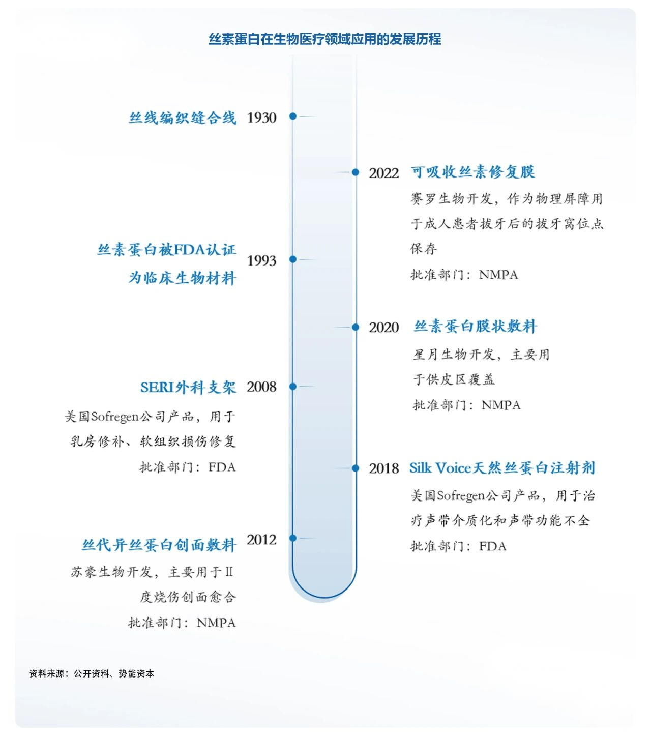 再生醫(yī)學(xué)領(lǐng)域作為一個(gè)正在成長中的朝陽行業(yè),面對的是一個(gè)待開發(fā)的增量市場,目前對于新型再生生物材料的研發(fā)腳步從未停止,相信隨著對絲素蛋白功能特性和復(fù)合生物材料的研究,將帶動創(chuàng)新醫(yī)療器械的發(fā)展,絲素蛋白也將迎來發(fā)展風(fēng)口。