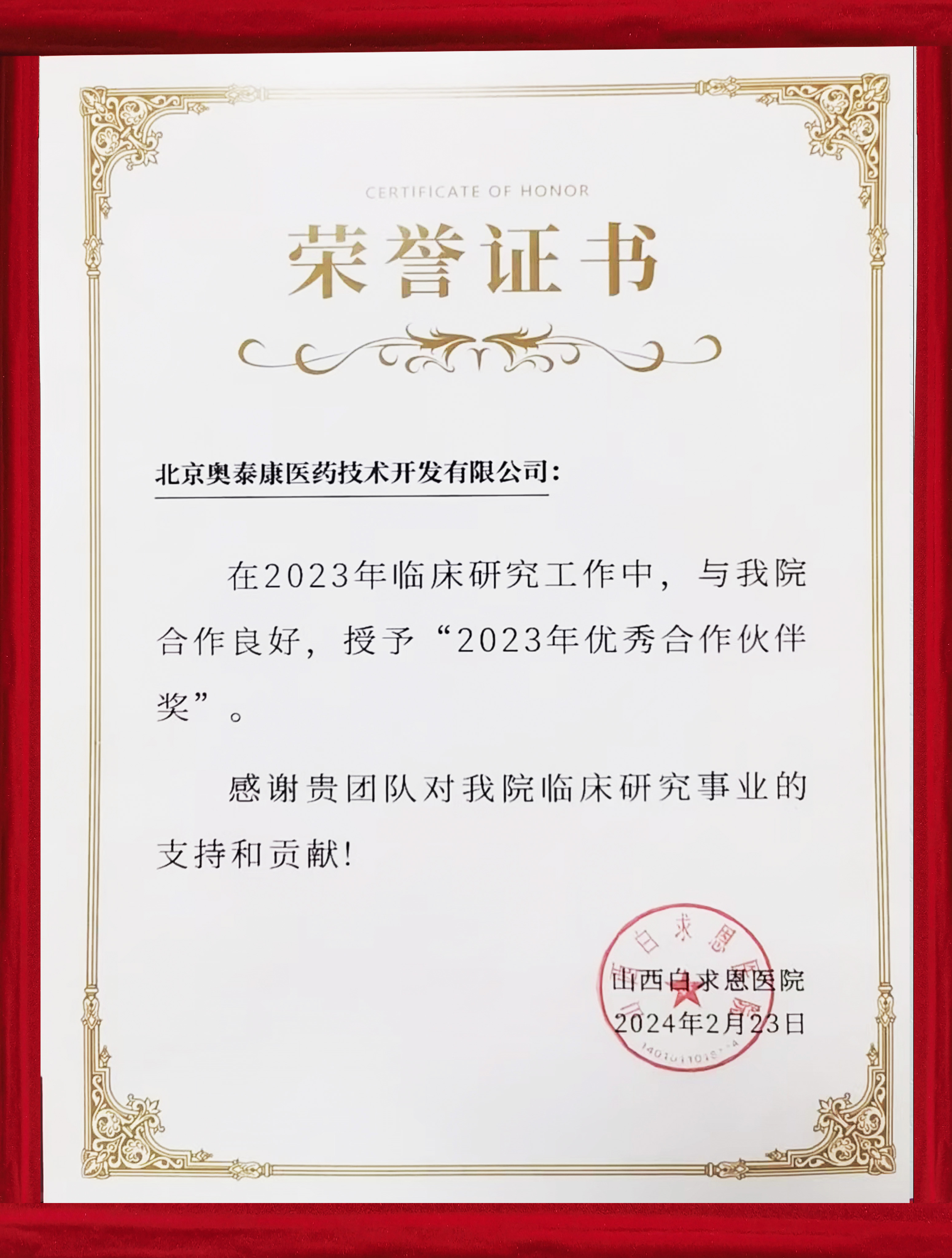 喜報(bào)~奧泰康榮獲山西白求恩醫(yī)院 同濟(jì)山西醫(yī)院“2023年優(yōu)秀合作伙伴獎(jiǎng)”攜手前行,推進(jìn)臨床研究事業(yè)高質(zhì)量發(fā)展???前言