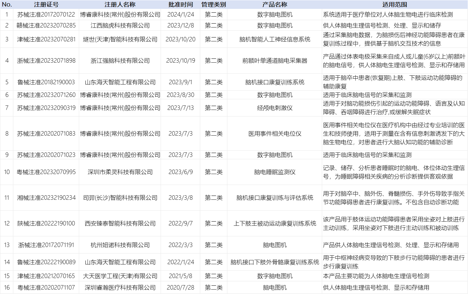 我國已獲批的二類腦機(jī)接口產(chǎn)品