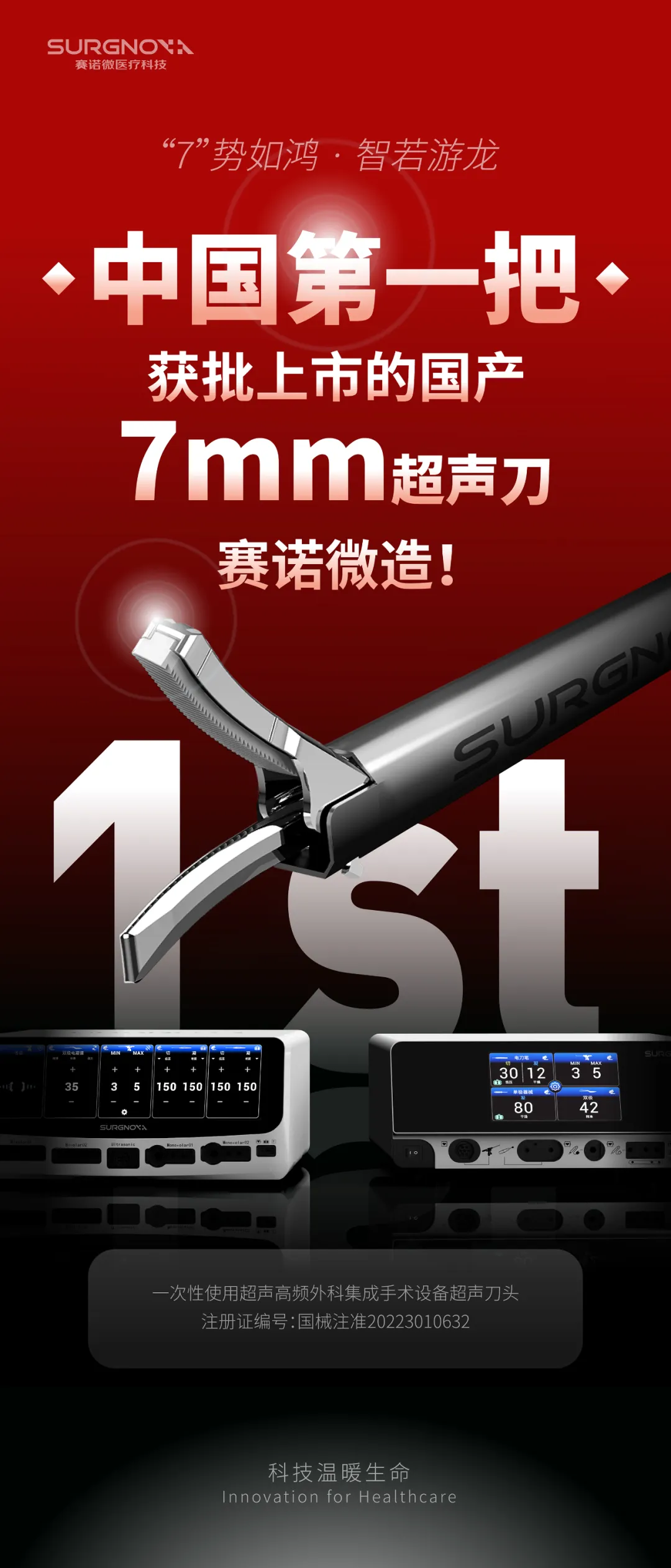 近日,賽諾微醫(yī)療科技自主研發(fā)的一次性使用超聲高頻外科集成手術(shù)設(shè)備超聲刀頭產(chǎn)品獲得NMPA批準(zhǔn)上市,系中國第一把獲批上市的國產(chǎn)7mm超聲刀,奧泰康參與臨床服務(wù)。