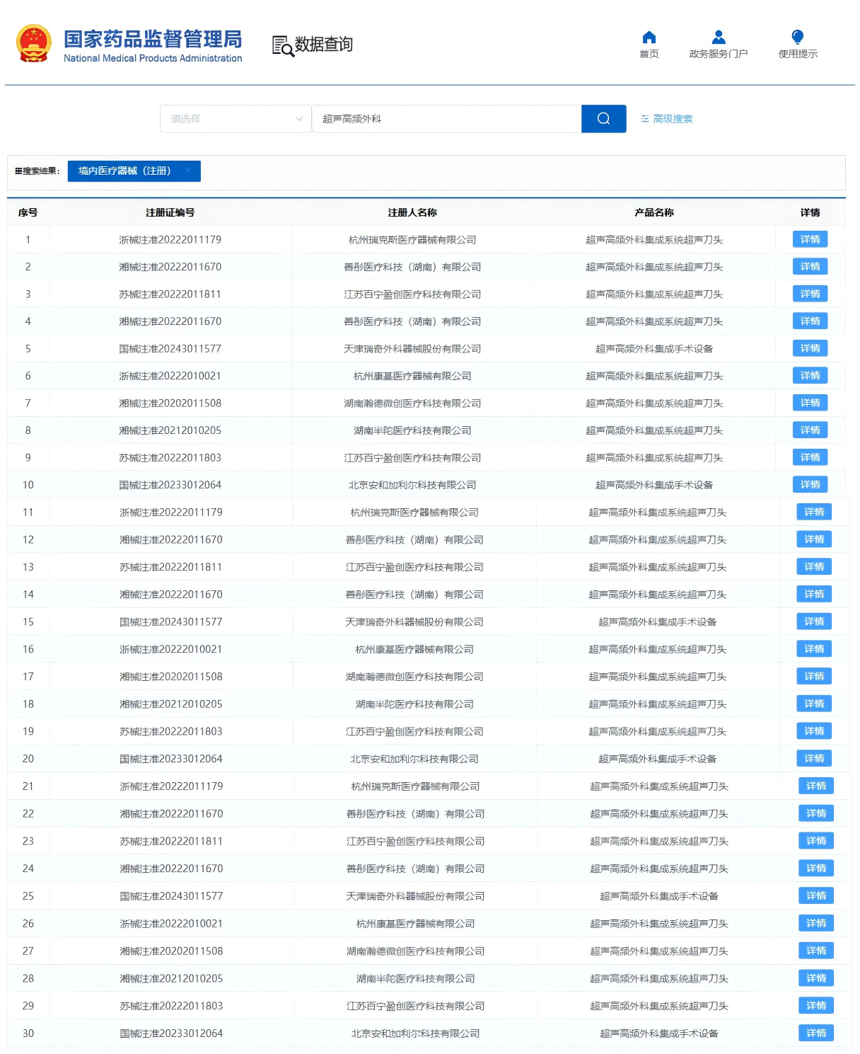 ● 2024年8月,賽諾微醫(yī)療科技自主研發(fā)的一次性使用超聲高頻外科集成手術(shù)設(shè)備超聲刀頭產(chǎn)品獲得NMPA批準(zhǔn)上市,系中國第一把獲批上市的國產(chǎn)7mm超聲刀。