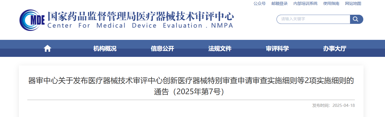 器審中心關(guān)于發(fā)布醫(yī)療器械技術(shù)審評中心創(chuàng)新醫(yī)療器械特別審查申請審查實施細則等2項實施細則的通告