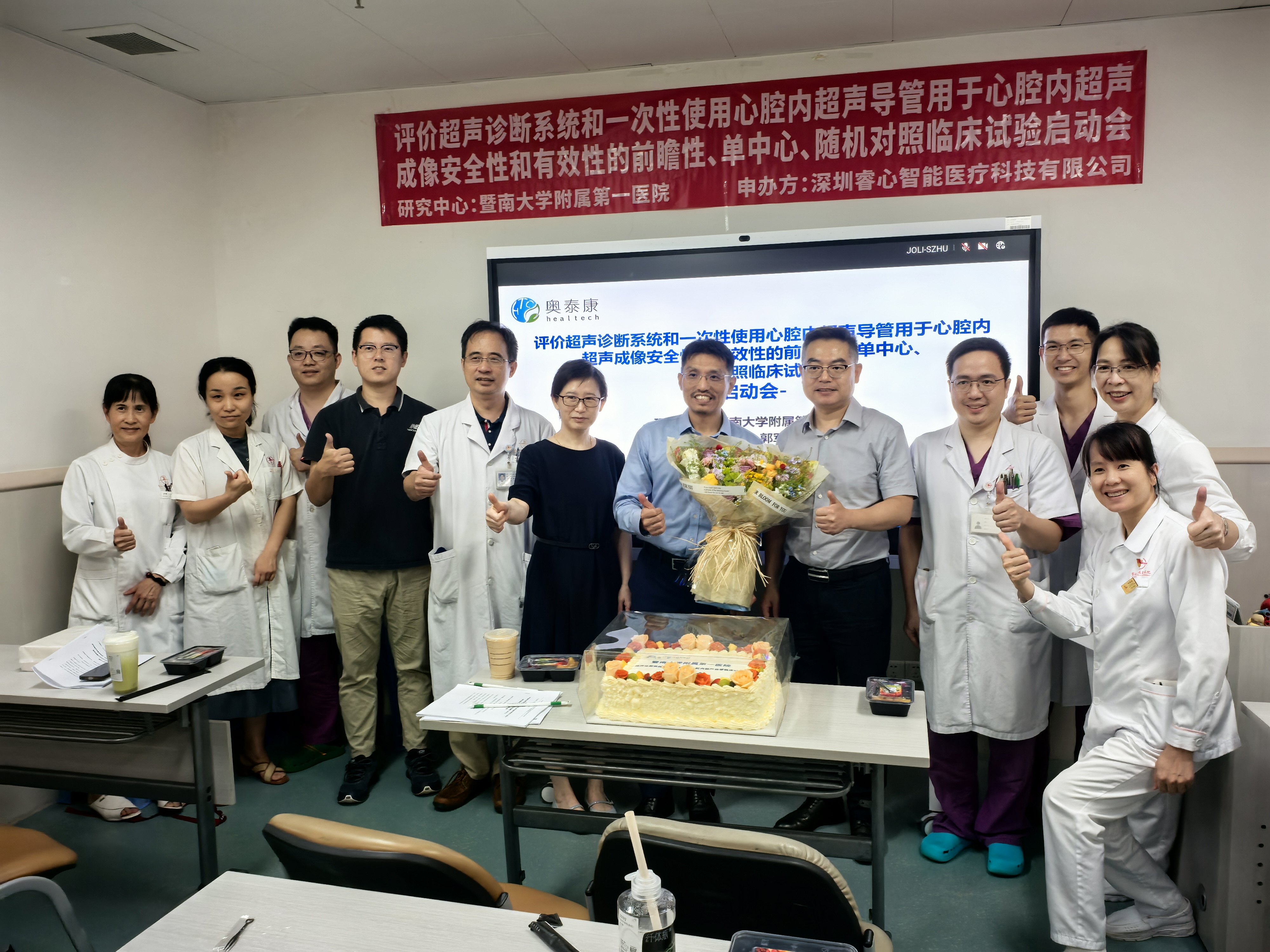 該臨床研究項目由暨南大學附屬第一醫(yī)院心內(nèi)科郭軍教授作為主要研究者,他在啟動會上表示:“心腔內(nèi)超聲心動圖(intracardiac echocardiography,ICE)具有實時成像、實時監(jiān)測術(shù)中并發(fā)癥以及良好的耐受性等優(yōu)點,近年來越來越多地應(yīng)用于多種類型的心臟介入操作。睿心醫(yī)療心腔內(nèi)超聲診斷系統(tǒng)和ICE導管,可以全程可視、精確顯示局部解剖結(jié)構(gòu)和心臟血流、血流速度等特點,很好地契合了臨床需求。希望睿心醫(yī)療心腔內(nèi)超聲診斷系統(tǒng)和一次性使用心腔內(nèi)超聲導管臨床試驗順利完成,早日在臨床使用,爭取把產(chǎn)品盡早推廣到全國乃至全世界。”