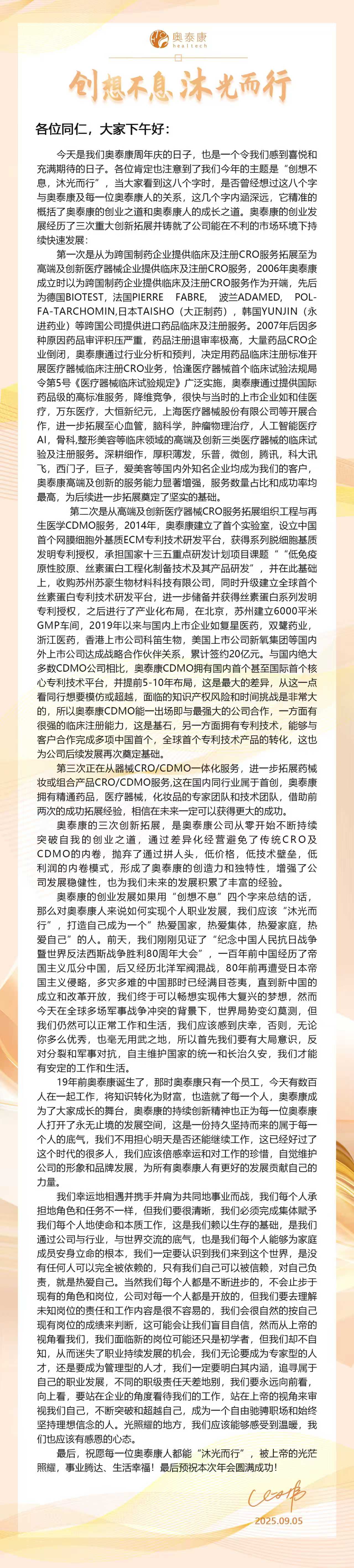 創(chuàng)想不息·沐光而行,2025奧泰康「集團(tuán)周年慶」暨頒獎(jiǎng)典禮落幕金秋禮贊,華章日新
