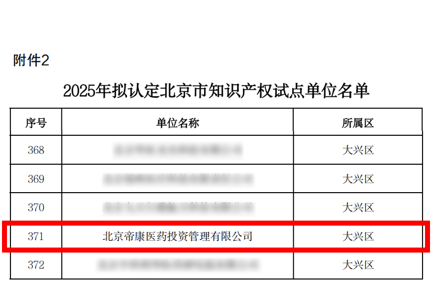 近日,北京市知識產權局正式發(fā)布《關于2025年擬認定北京市知識產權試點優(yōu)勢單位及復審通過單位名單公示的通知》,根據《北京市知識產權試點優(yōu)勢單位認定與管理辦法》要求,奧泰康北京CDMO中心(北京帝康醫(yī)藥投資管理有限公司)正式獲評“北京市知識產權試點單位”,這一榮譽是北京市知識產權局對企業(yè)核心創(chuàng)新能力與行業(yè)競爭力的高度肯定,標志著奧泰康北京CDMO中心在科技創(chuàng)新與成果轉化邁出重要一步。