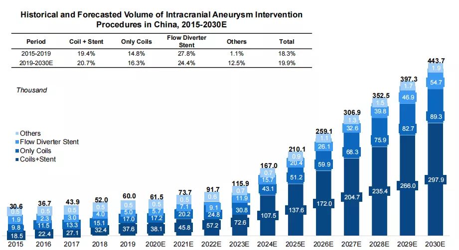 相較于歐美人群,我國(guó)顱內(nèi)動(dòng)脈瘤普遍呈現(xiàn)“瘤體小、載瘤動(dòng)脈管徑細(xì)”的特點(diǎn),但目前市場(chǎng)上的的動(dòng)脈瘤栓塞彈簧圈仍以進(jìn)口產(chǎn)品為主,國(guó)產(chǎn)替代率尚不足10%,亟需一款適合國(guó)人的超柔軟彈簧圈。通橋鳳彈簧圈的上市,填補(bǔ)了這一市場(chǎng)空白。通橋鳳彈簧圈圈體更柔軟,推送系統(tǒng)更柔順,能更好地順應(yīng)瘤體形態(tài),提高手術(shù)安全性和栓塞效果。 同時(shí),通橋鳳彈簧圈采用了機(jī)械解脫的結(jié)構(gòu),與電解脫和水解脫方式相比,解脫過(guò)程簡(jiǎn)單快速、安全可靠,術(shù)者只需“一折一拉”,即刻解脫,平均解脫時(shí)間小于1秒。 在型號(hào)方面,通橋鳳彈簧圈系統(tǒng)擁有十分齊全的規(guī)格型號(hào),包括6個(gè)1mm型號(hào),可以覆蓋多數(shù)復(fù)雜病變,為小動(dòng)脈瘤栓塞提供更多選擇,為患者和醫(yī)生提供全方位栓塞治療方案。 隨著中國(guó)人口老齡化的加劇及國(guó)內(nèi)神經(jīng)介入技術(shù)的快速發(fā)展,我國(guó)的神經(jīng)介入醫(yī)療器械市場(chǎng)快速增長(zhǎng)?!吨袊?guó)腦卒中防治報(bào)告(2020)》指出,我國(guó)顱內(nèi)動(dòng)脈瘤的檢出率高達(dá)7%,且呈現(xiàn)逐年上升趨勢(shì)。根據(jù)弗若斯特沙利文分析,中國(guó)顱內(nèi)動(dòng)脈瘤介入手術(shù)量由2018年的5.2萬(wàn)臺(tái)到2021年7.37萬(wàn)臺(tái),到2030年將進(jìn)一步增加到44.4萬(wàn)臺(tái),市場(chǎng)空間巨大。